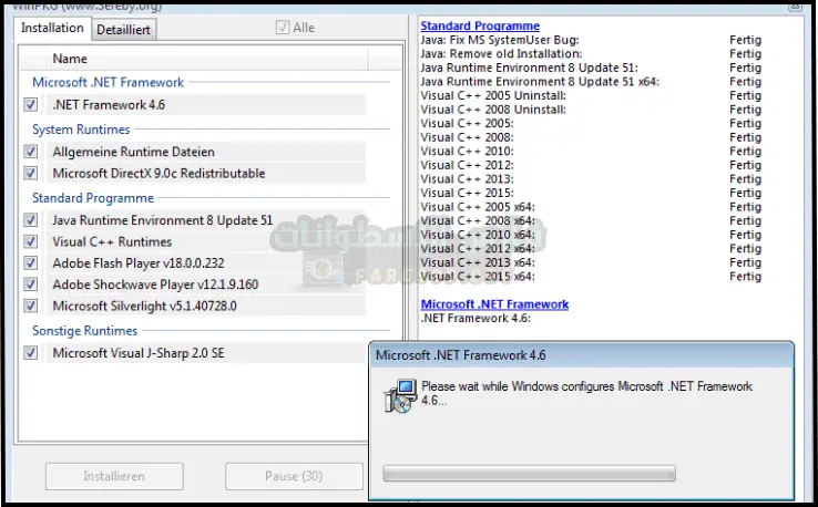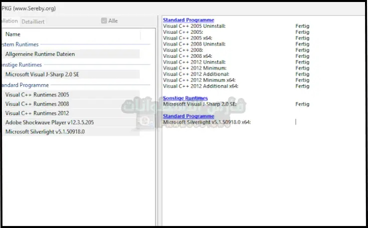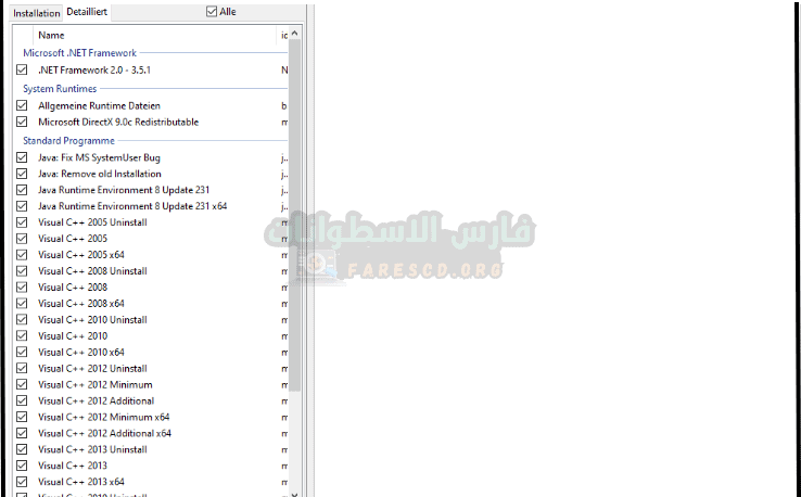 | غاية | يقوم بتثبيت بيئات التشغيل الأساسية لنظام التشغيل Windows |