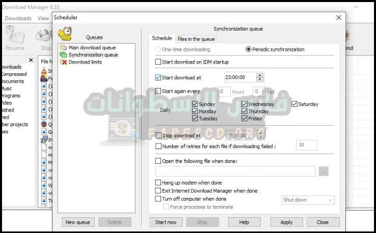 - خيار الاستمرار في التنزيل بعد إيقاف تشغيل البرنامج أو فصل الإنترنت.