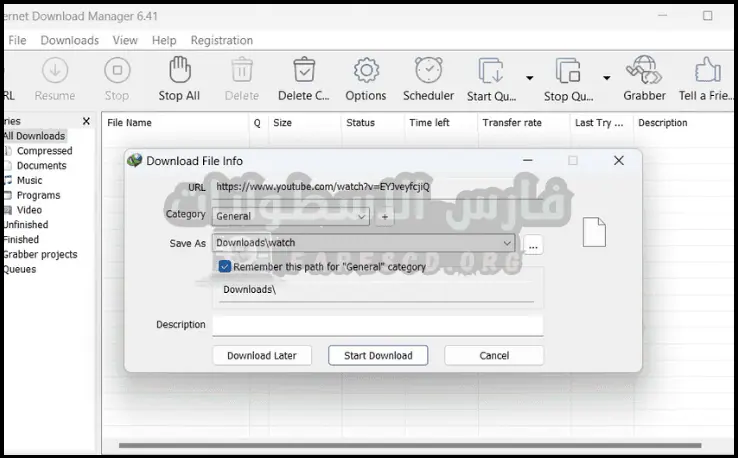 بدون إدخالك، يبدأ التطبيق في تنزيل الملفات تلقائيًا. أفضل أداة لإدارة التنزيلات وتنظيم الملفات وفرز الملفات والصور ومقاطع الفيديو وزيادة سرعة التنزيل هي أحدث إصدار من تطبيق Internet Download Manage. بعد تشغيله، يتتبع كل صفحة تزورها ويفحصها بحثًا عن أي صوت أو فيديو، بالإضافة إلى الصور الضخمة أحيانًا.