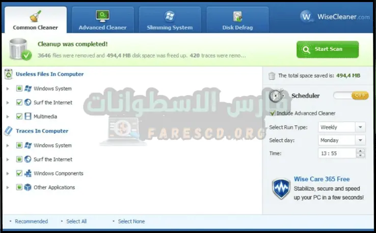 إذا كنت تبحث عن برنامج صغير مجاني لتنظيف الكمبيوتر وتحسين أداء الويندوز وتسريع الجهاز بخطوات بسيطة وسهلة التنفيذ دون صعوبات أو تعقيدات، فإن برنامج Wise Disk Cleaner سيكون الحل الأمثل للحفاظ على الكمبيوتر وتسريعه بنقرة واحدة فقط، تحميل برنامج Wise Disk Cleaner حيث يعد هذا البرنامج الرائع من أفضل وأهم برامج الكمبيوتر المتخصصة في تنظيف الويندوز.